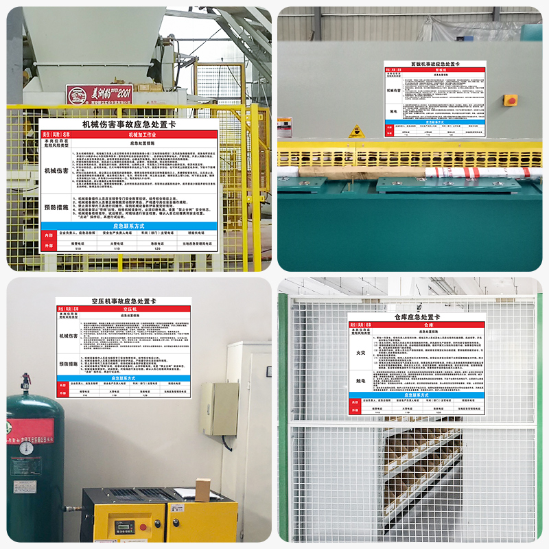 事故应急处置卡应急预案岗位现场牌子警示牌标识牌提示牌安全火灾触电事故危险化学品泄漏方案处置方法广告牌