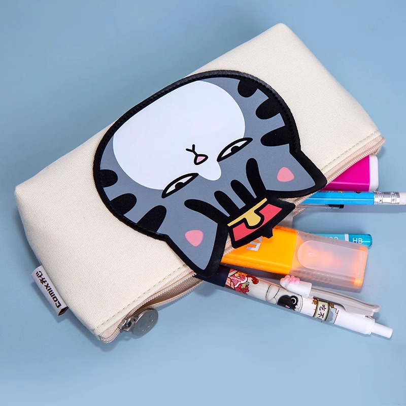 齐心 WHA3202 吾皇万睡 皮章笔袋 帆布笔袋女孩文具盒男生大容量文具袋学生可爱视窗帆布拉链笔袋