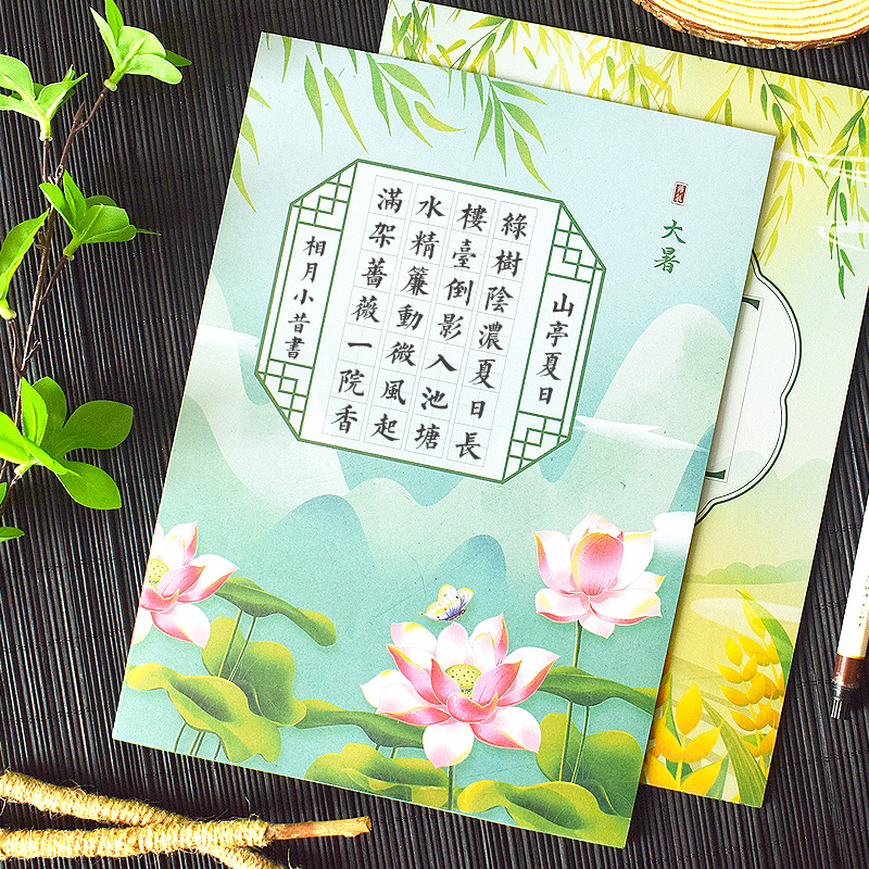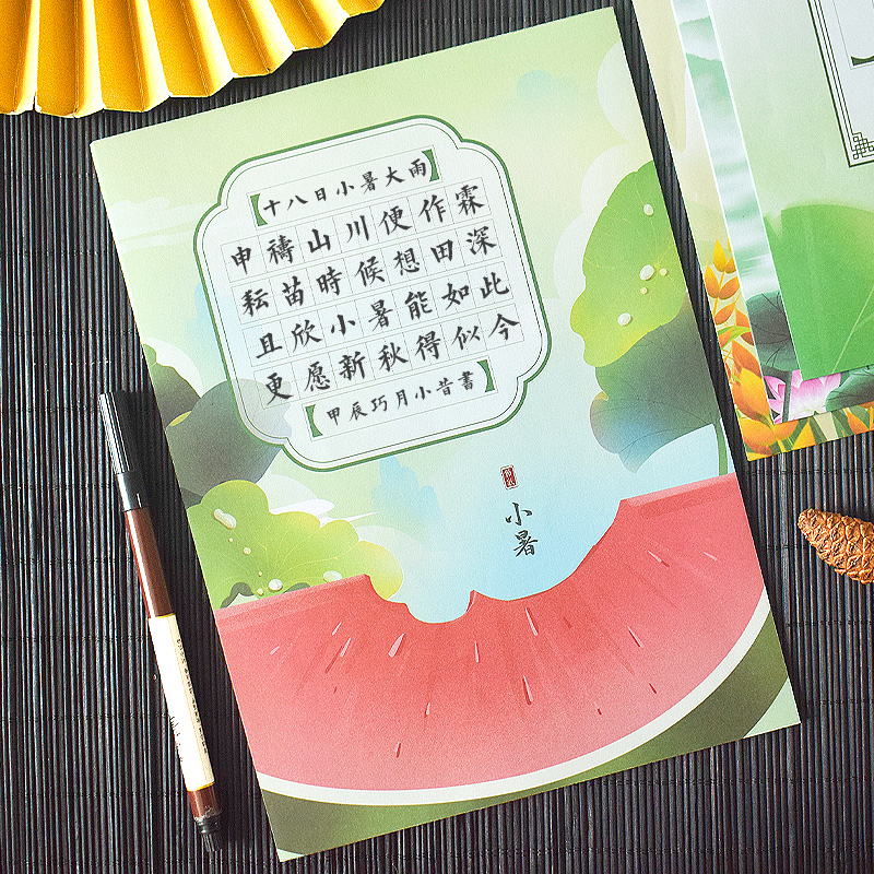 知砚夏山如碧A4硬笔书法展示纸大尺寸二十四节气夏日主题夏至芒种诗词抄写创作比赛练习田字格五言七言作品纸