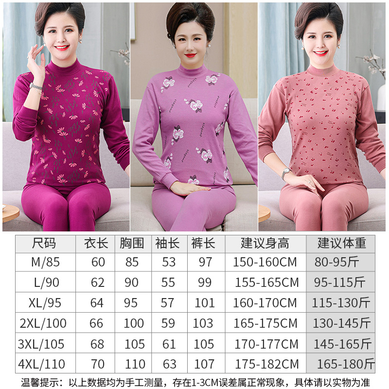 恒源祥中老年秋衣秋裤女纯棉套装老年人大码棉毛衫奶奶妈妈保暖内