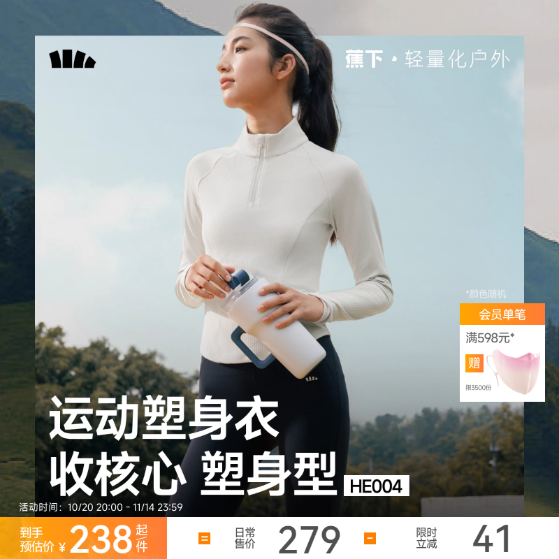 蕉下速干运动塑身衣女半拉链t恤修身塑形运动跑步健身服长袖上衣