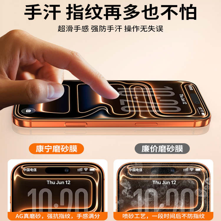 【升级康宁磨砂】贝尊适用苹果17promax磨砂钢化膜iphone16Pro手机膜15新款14无尘仓贴膜13电竞游戏防指纹Air