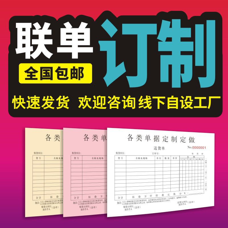 表格收据联单无碳复写纸送货单三联定制定做出货二联专业印刷工厂