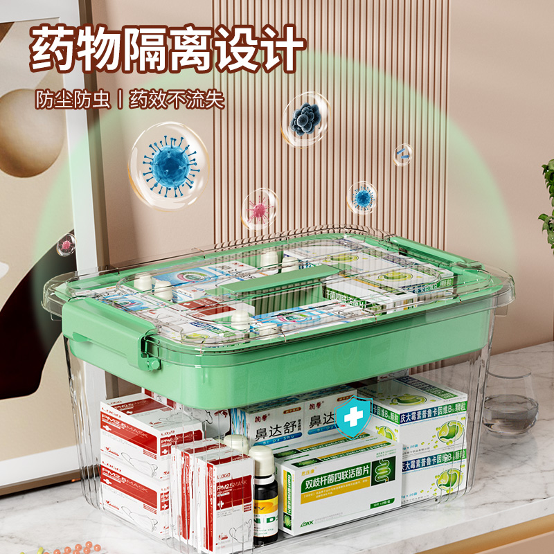 药箱家庭装家用多层医药箱药物收纳盒大容量大号透明药盒桌面密封