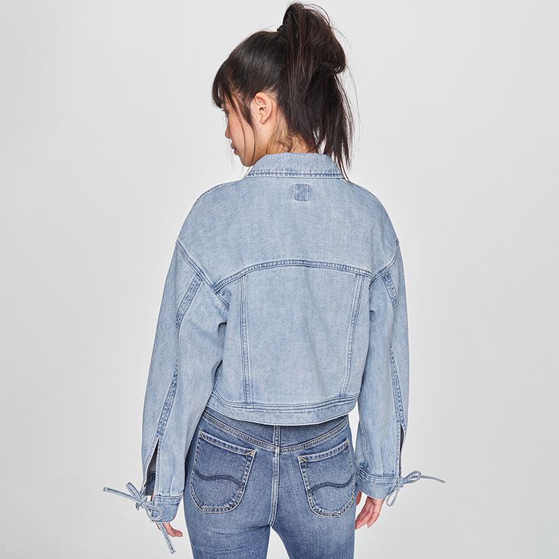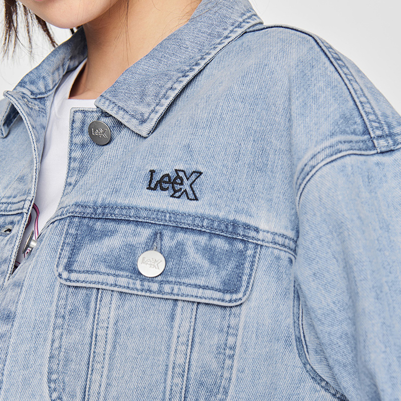 Lee25新品舒适版翻领刺绣小Logo浅蓝色女牛仔夹克外套休闲潮流