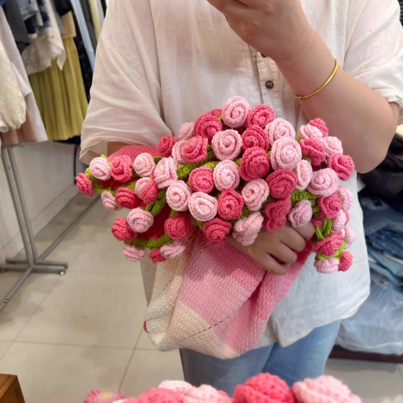 玫瑰花渐变毯花束的毯子钩织手织diy毛线针织手工编织材料包软糯