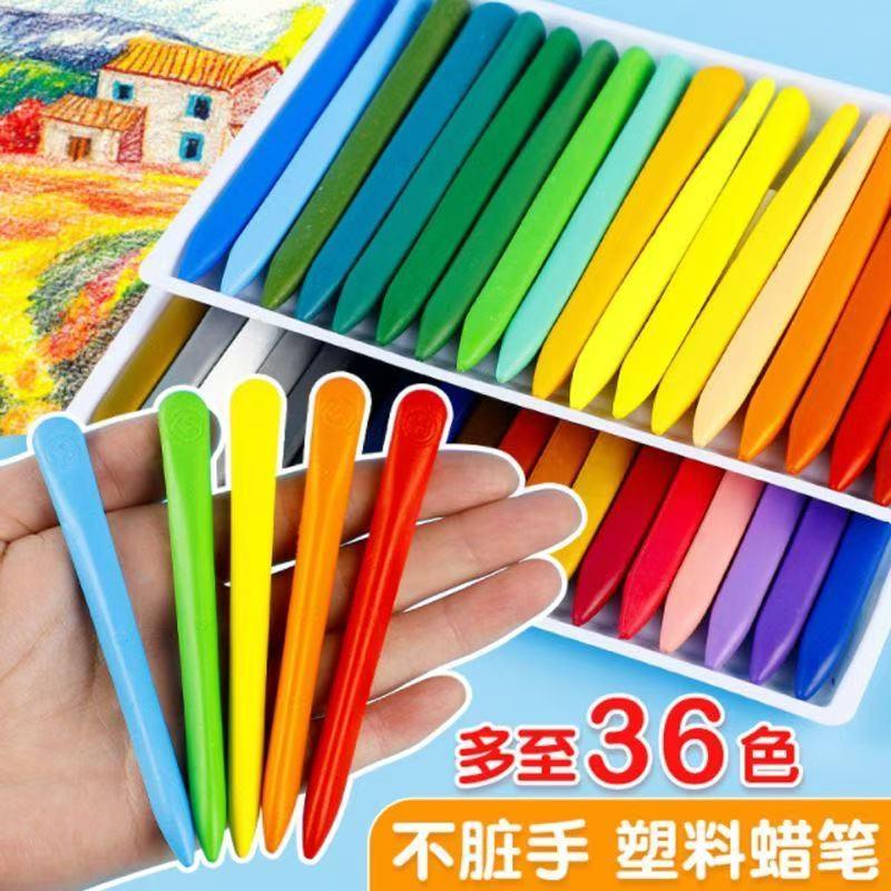不脏手塑料蜡笔儿童安全画笔幼儿园专用可水洗宝宝36色桶装油画棒