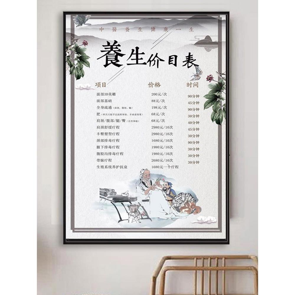 养生馆足疗价目表定制推拿挂墙美容院价格表设计制作广告贴纸海报