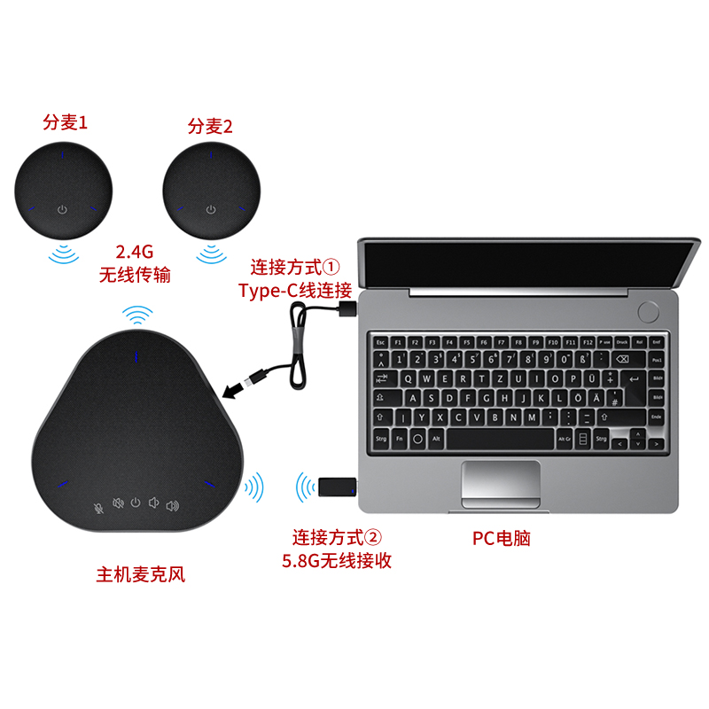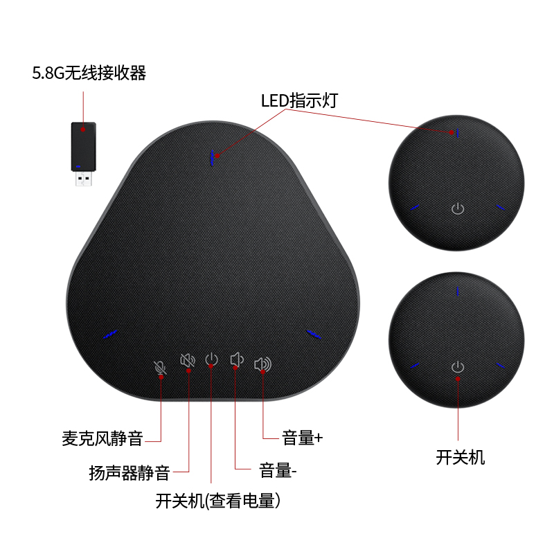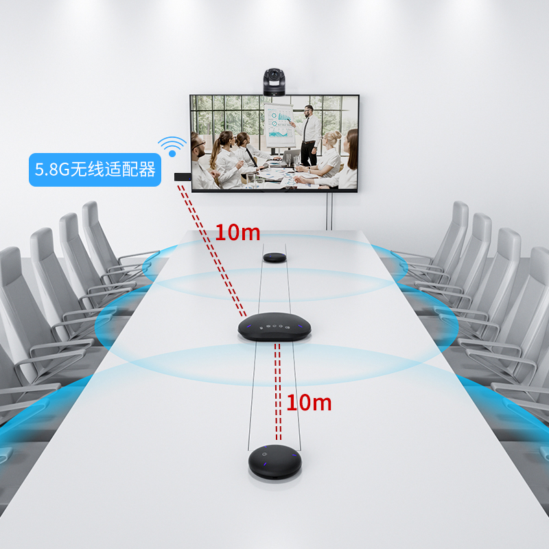 生华视通SH-M868WEX视频会议全向麦克风5.8G无线级联麦克风腾讯钉钉远程网络游戏直播桌面扬声器免驱智能降噪