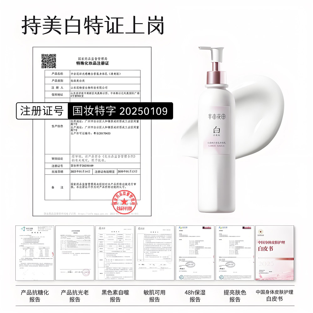 半亩花田烟酰胺美白身体乳持久留香补水保湿滋润香体润肤正品乳液