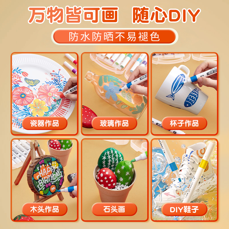 晨光丙烯马克笔学生美术专用不透色可叠色彩笔儿童幼儿无毒水彩笔