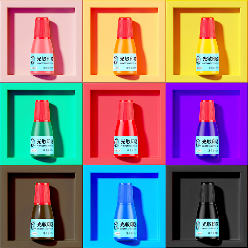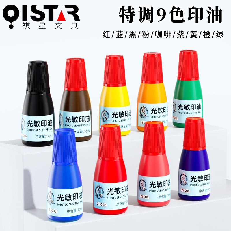 祺星朱光印光敏印油研磨更细腻颜色鲜艳多色彩色行政签名物业办公公章加印油盖章补充液手帐印油高级快干10ml
