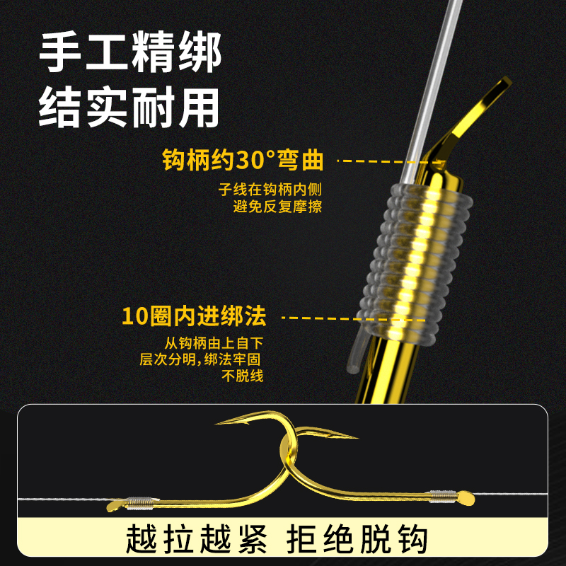 鱼钩绑好子线双钩成品套装伊势尼金袖有刺钓鱼钩金海夕野钓鲫鱼钩