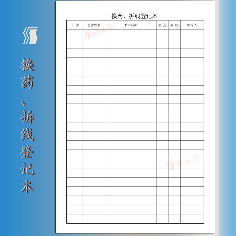 换药拆线登记本手术科室记录表外科缝针伤口诊所医院单位定制订做