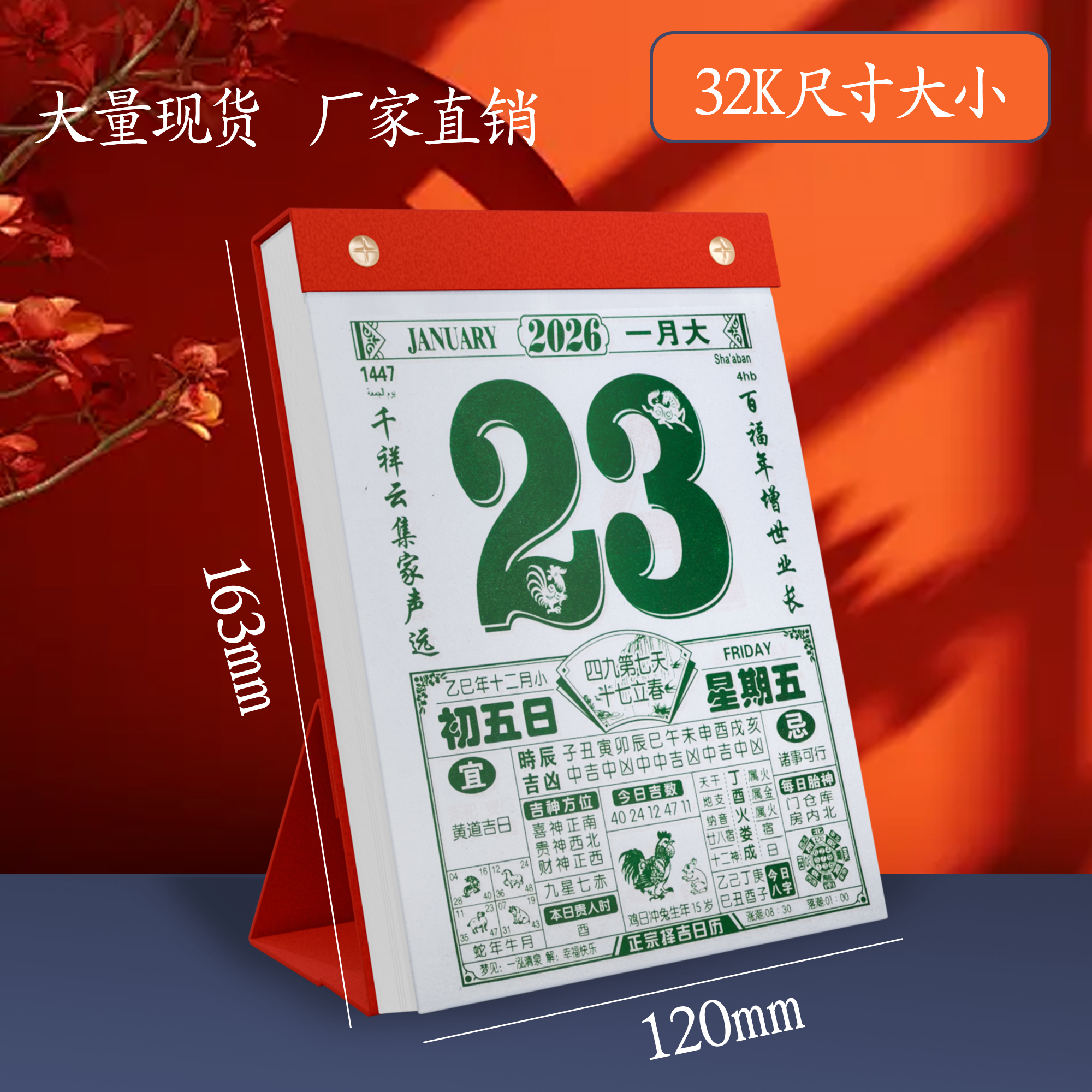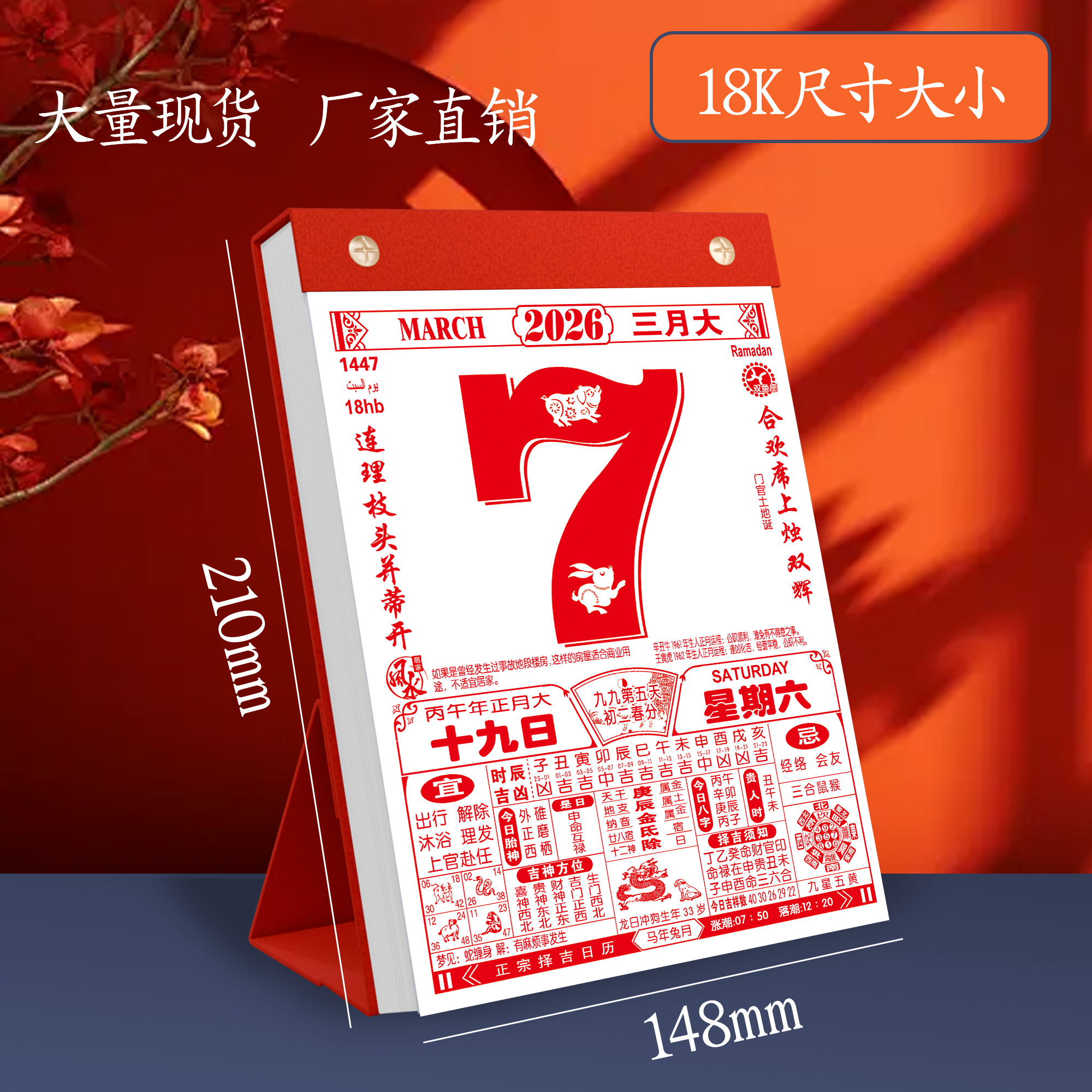 2026年老黄历日历新款马年桌面手撕台历传统老式家用可订制定做LOGO