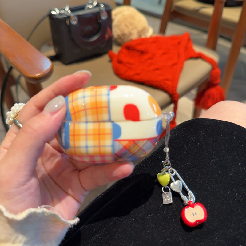适用华为freebuds5保护套freebuds6i格纹波点拼色ins风freeclip耳机套4/4e代SE3软壳PRO3韩系挂件5i小众pro4