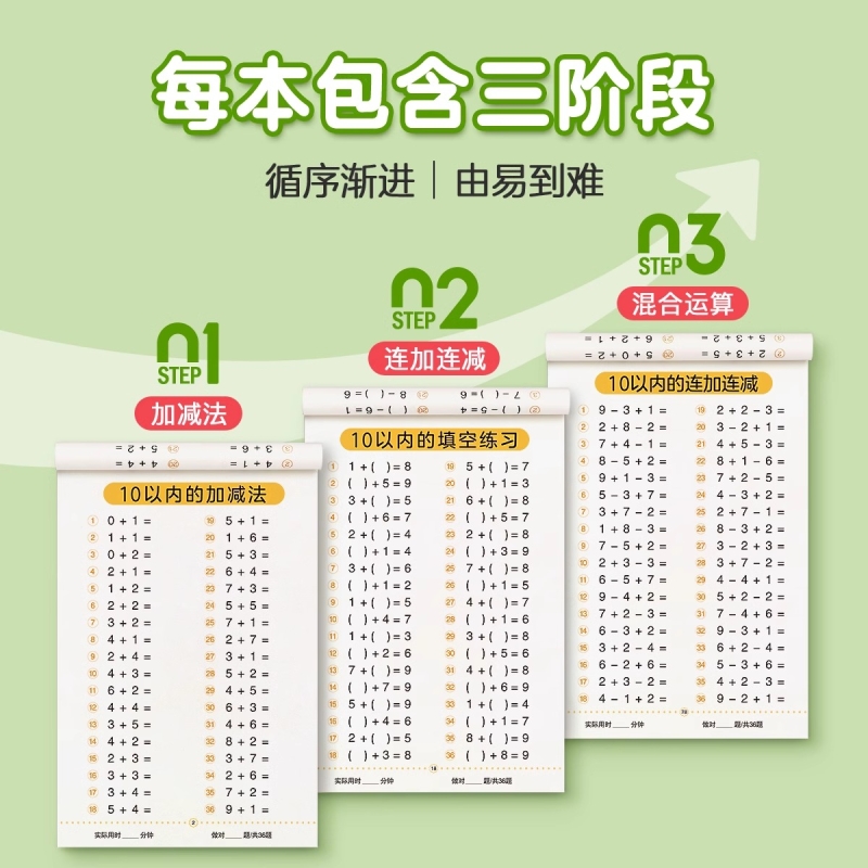 50以内加减法练习册口算天天练幼小衔接一年级口算题卡幼儿学前班十数学思维训练题幼儿园中大班算数本教材全套每日一练