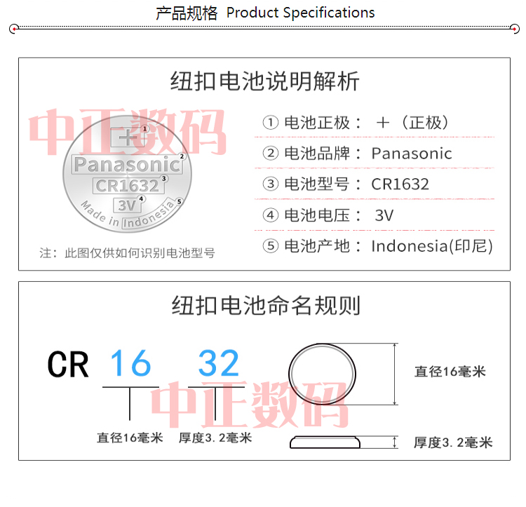 进口松下CR2032/CR2025/CR2016/锂3V汽车钥匙电子遥控器纽扣电池