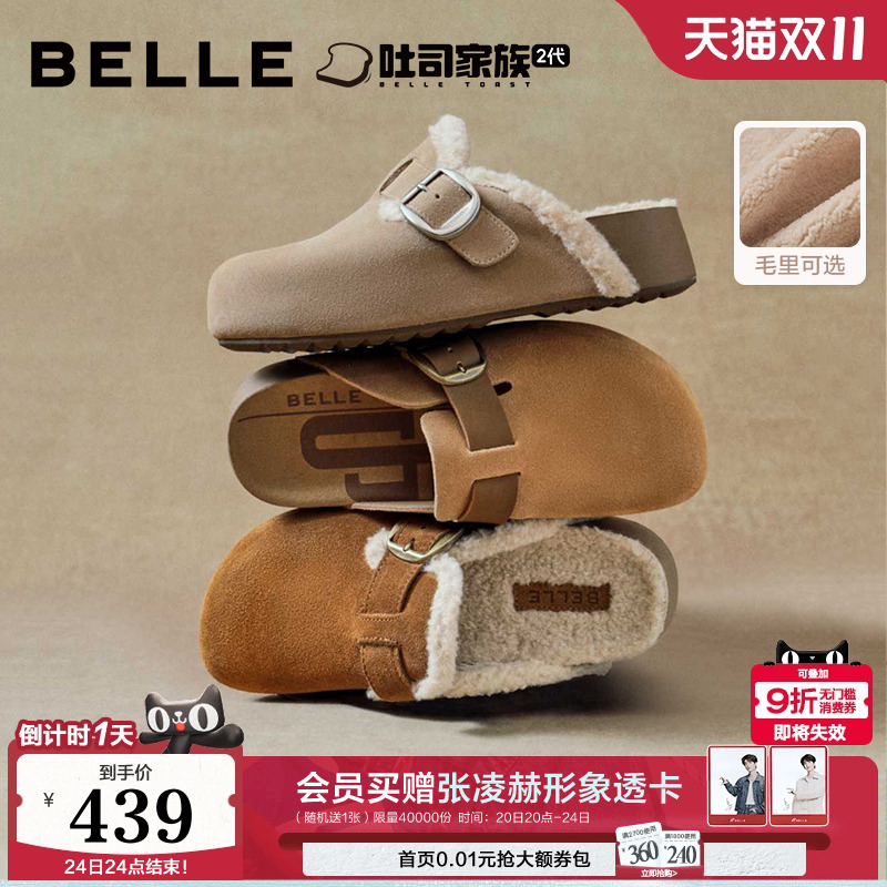 张凌赫同款百丽厚岛吐司2代包头加毛保暖雪地勃肯鞋增高可外穿预