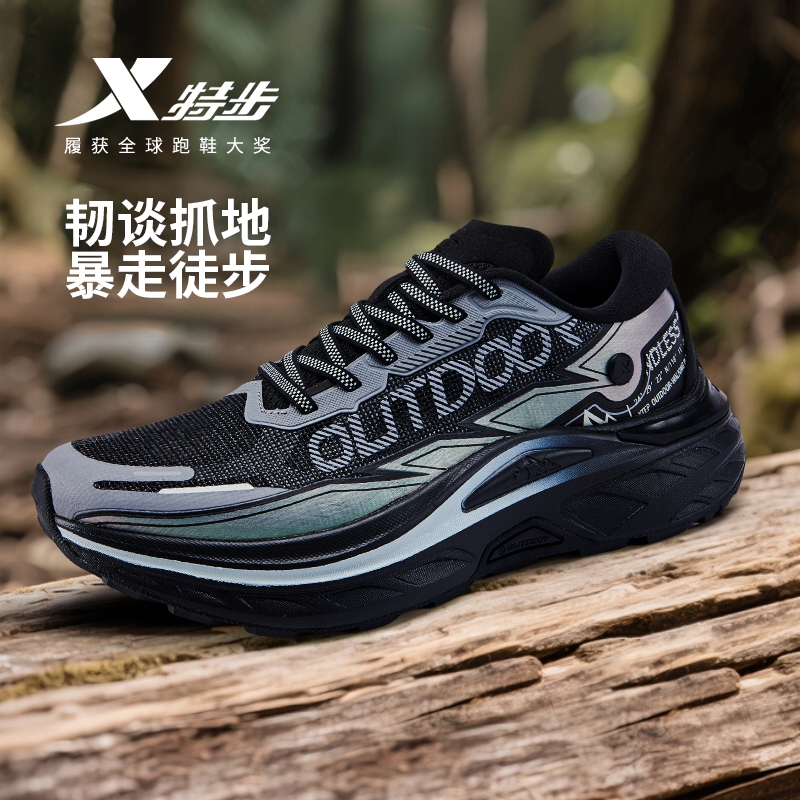 特步昆仑2.0黑色轻量化徒步登山鞋男减震户外跑鞋官方旗舰店正品