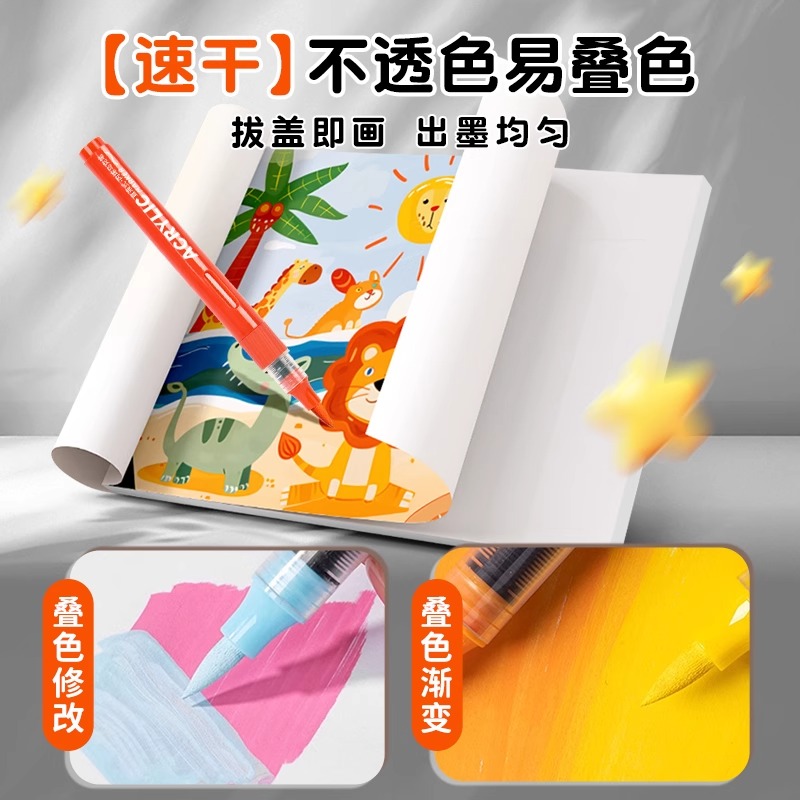 直液式丙烯马克笔软头美术专用画画笔双头儿童安全无毒可水洗学生水彩笔48色不透色可叠加白DIY涂鸦笔丙烯笔