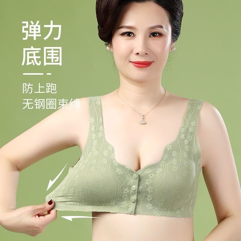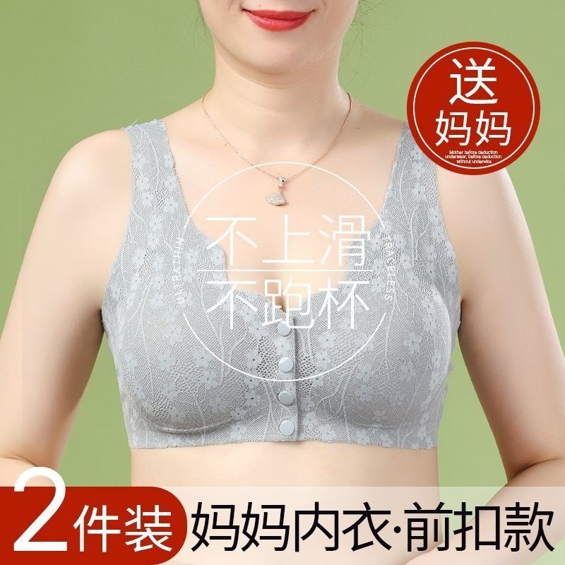 妈妈内衣文胸中老年人无痕前扣背心式大码中年聚拢无钢圈胸罩薄款