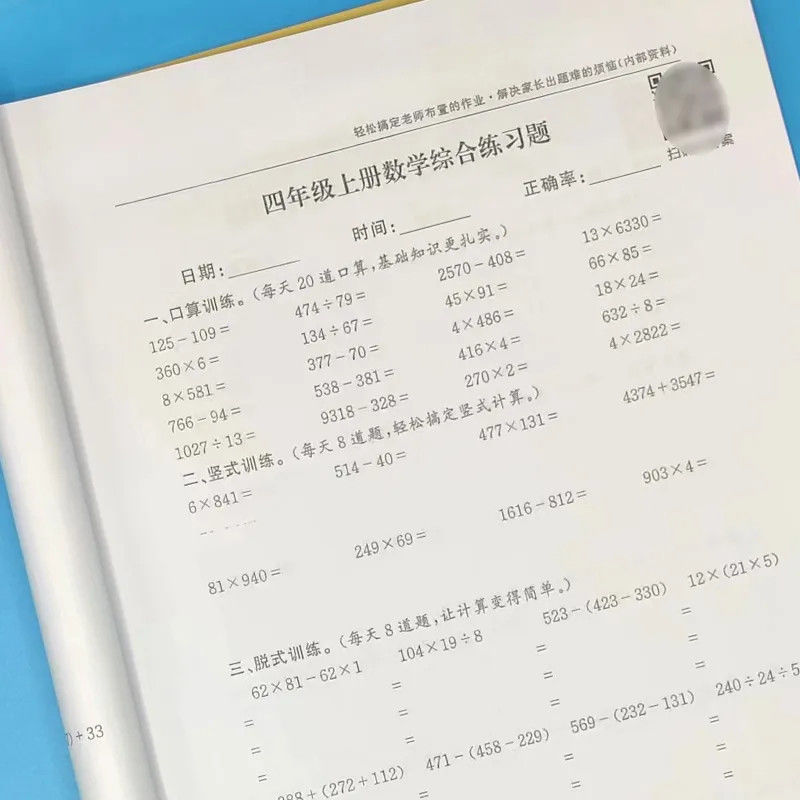 四年级上册数学应用题228题口算竖式脱式2200道及语文阅读理解
