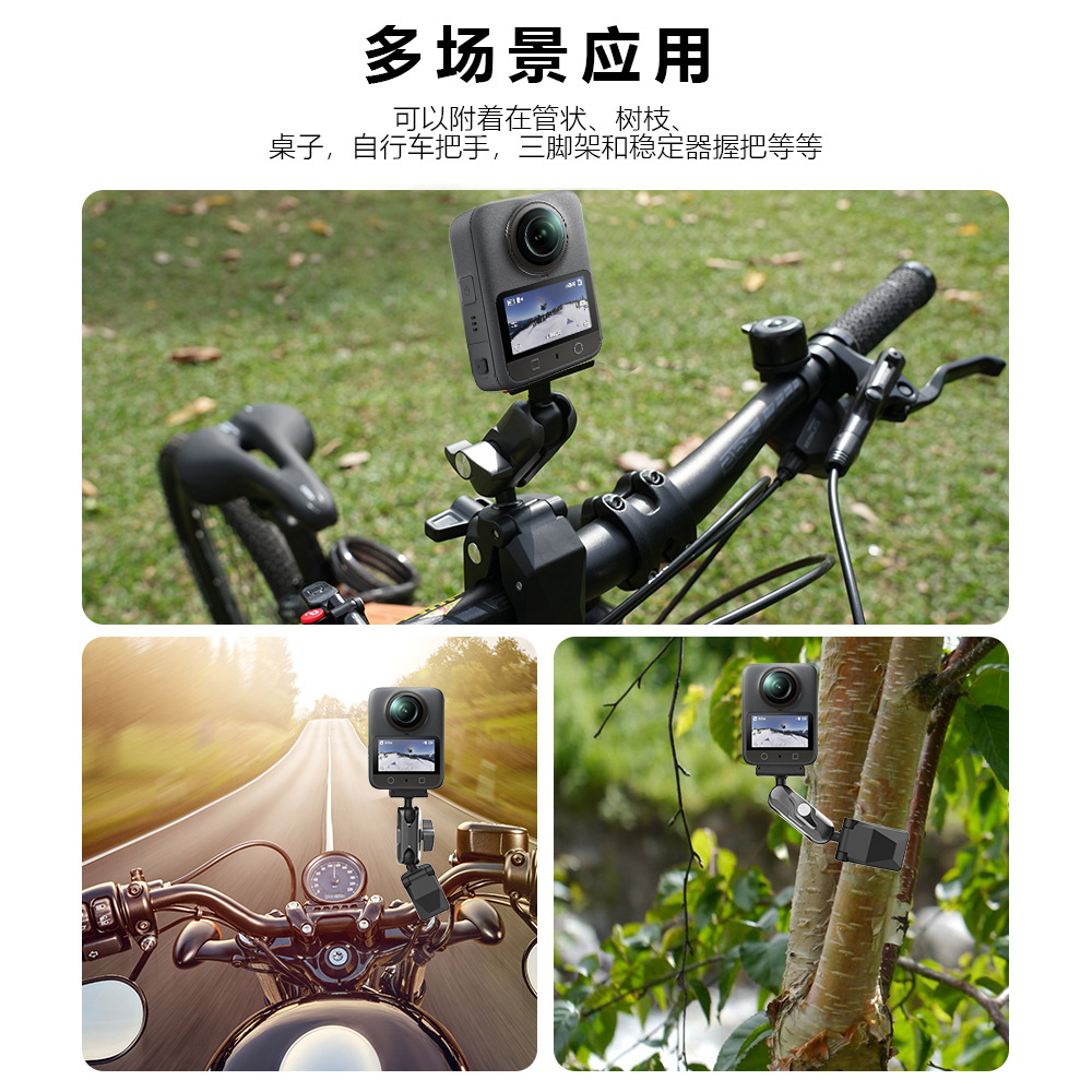 磁吸快拆底座骑行支架适用大疆360全景运动相机摩托车自行车拍摄抖音专用vlog支架山地车固定夹蟹钳子配件
