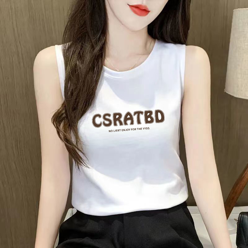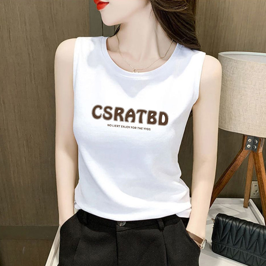 出口高品质纯棉背心小吊带夏季女宽松内搭百搭印花女汗衫无袖上衣