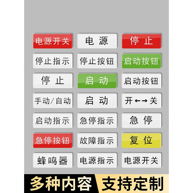 亚克力标签贴机械设备按钮标识标牌定做急停电源开关安全停止复位启动故障指示贴纸电柜电箱标志贴牌铭牌定制
