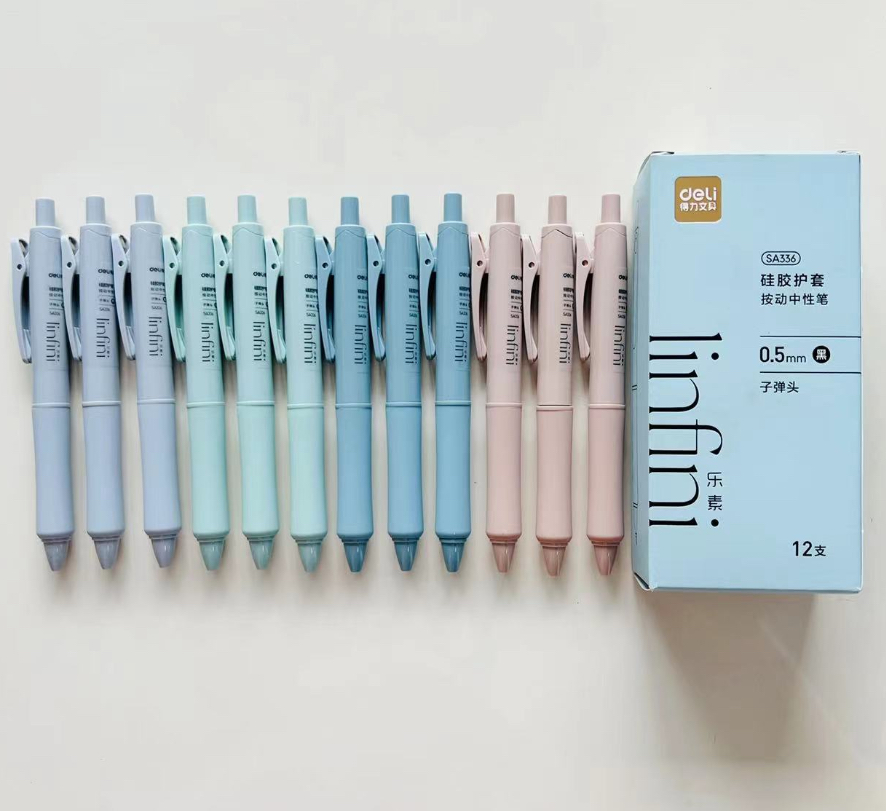 Deli/得力SA336乐素按动中性笔0.5mm子弹头学生臻顺滑黑色刷题笔