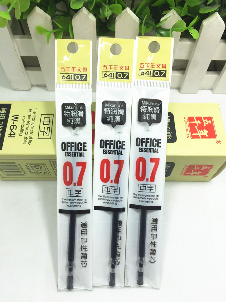 五千年0.7mm替芯润滑不断墨黑色红色练字笔通用常规笔芯W-641