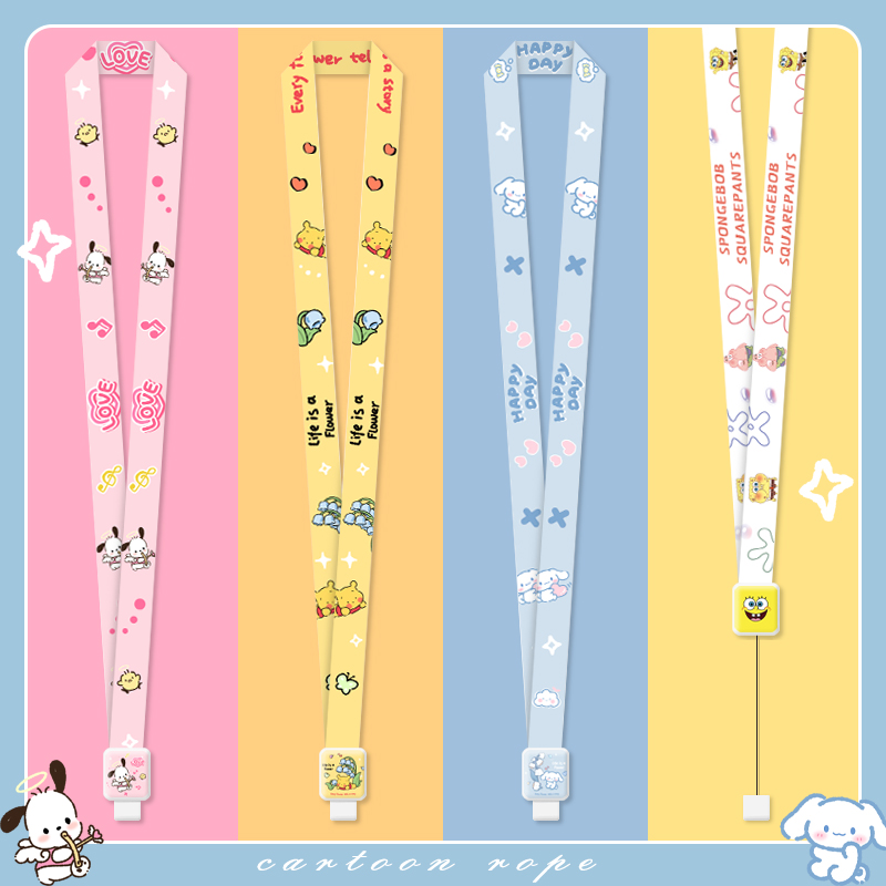 卡通小帕可伸缩工牌胸卡挂绳挂脖绳可爱员工工作证件套卡套伸缩绳易拉扣长绳医生护士挂牌出入证保护套绳子