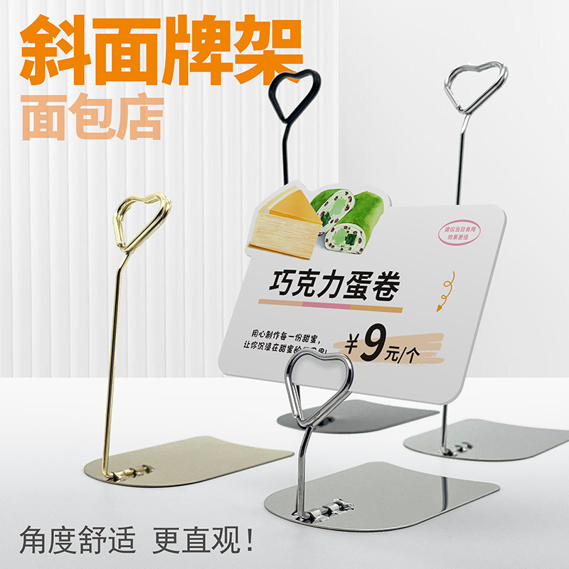 可擦写面包价格牌 蛋糕烘焙店PVC防水金属标签支架甜品超市标价牌不锈钢架商品标价签展示架pop广告夹子立式