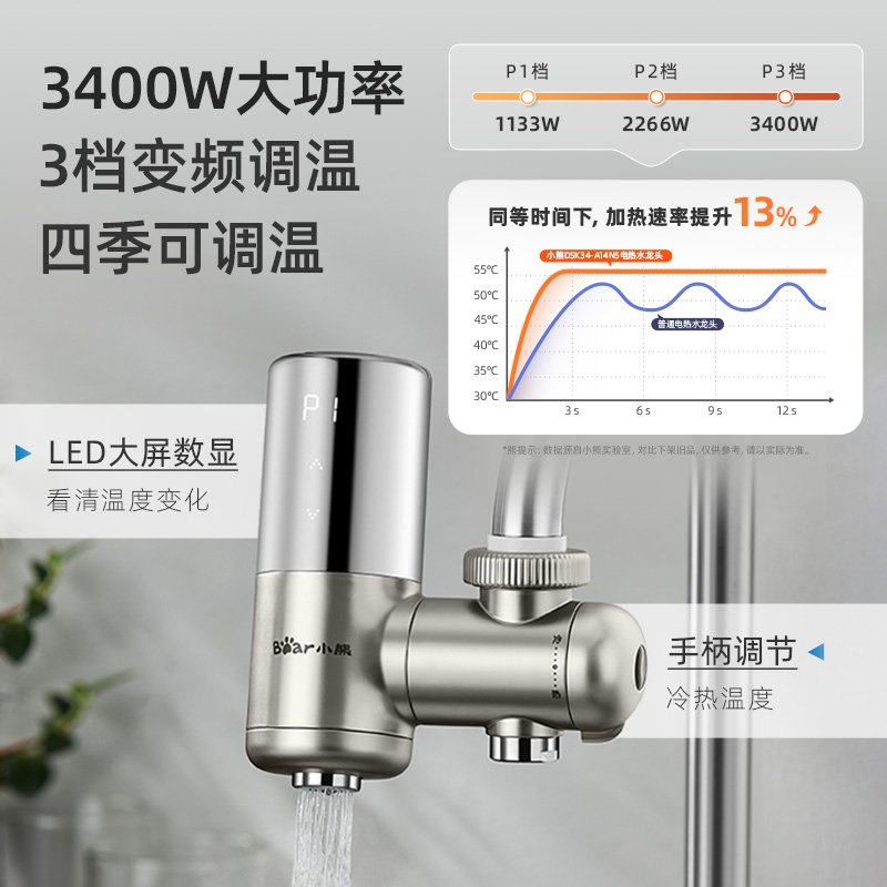 小熊电热水龙头加热器即热式变频恒温过水速热家用小型厨房免安装