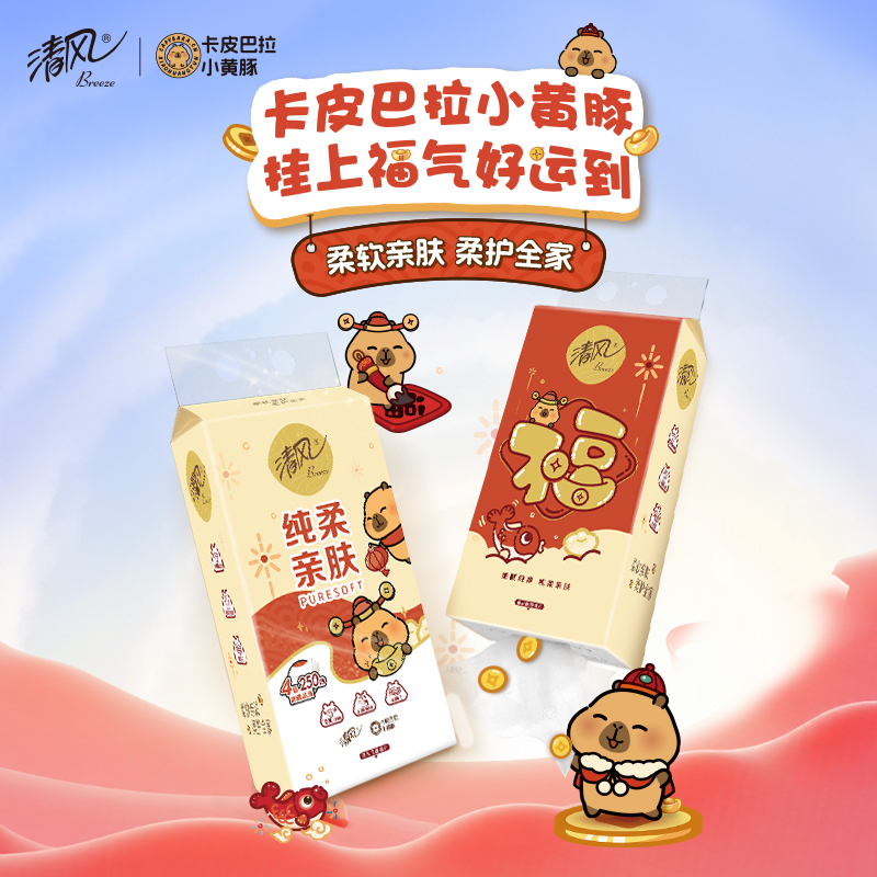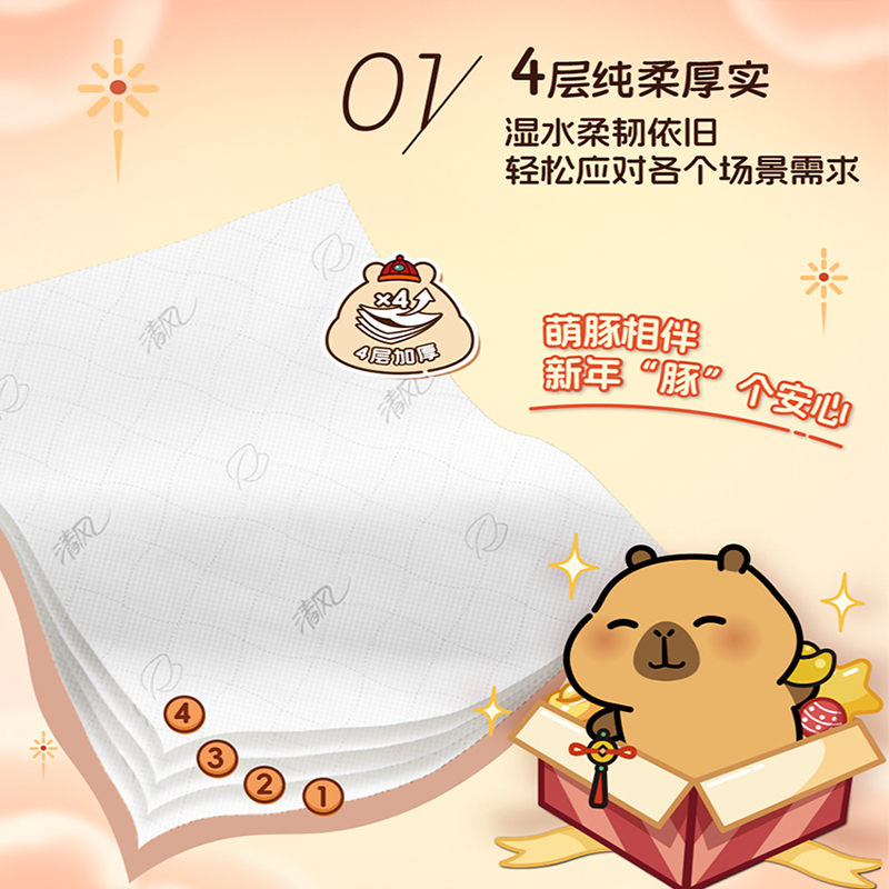 【李昀锐同款】清风卡皮巴拉抽纸10提悬挂式挂抽纸巾整箱厕纸抽by