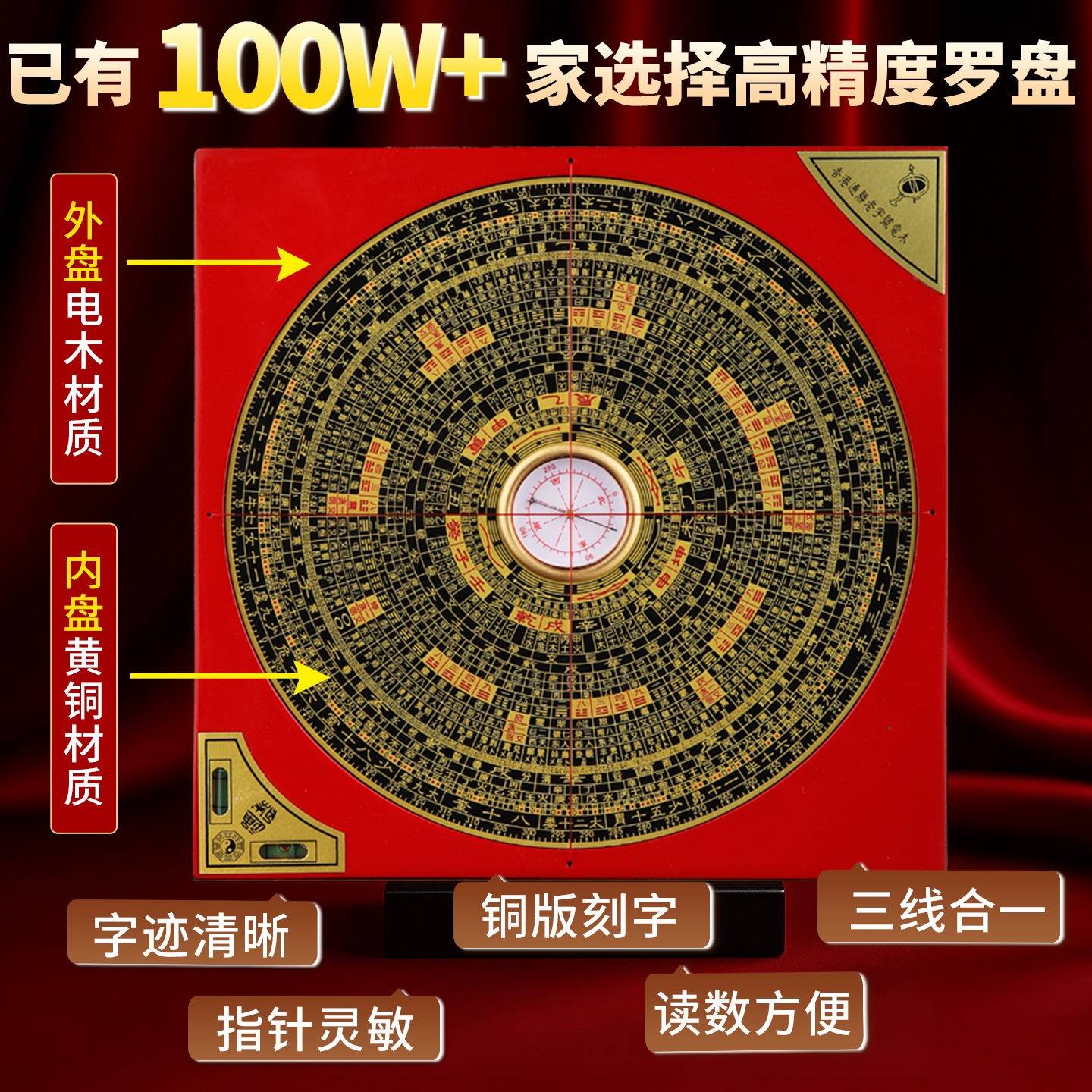 罗盘高精度专业纯黄铜综合指南针铜罗盘三元三合风水盘铜罗经摆件