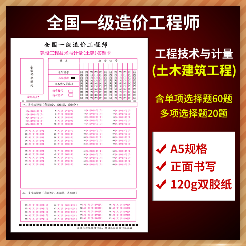 (土建)全国一级造价师答题卡考试建设工程造价管理建设工程计价建设工程技术与计量建设工程造价案例与分析