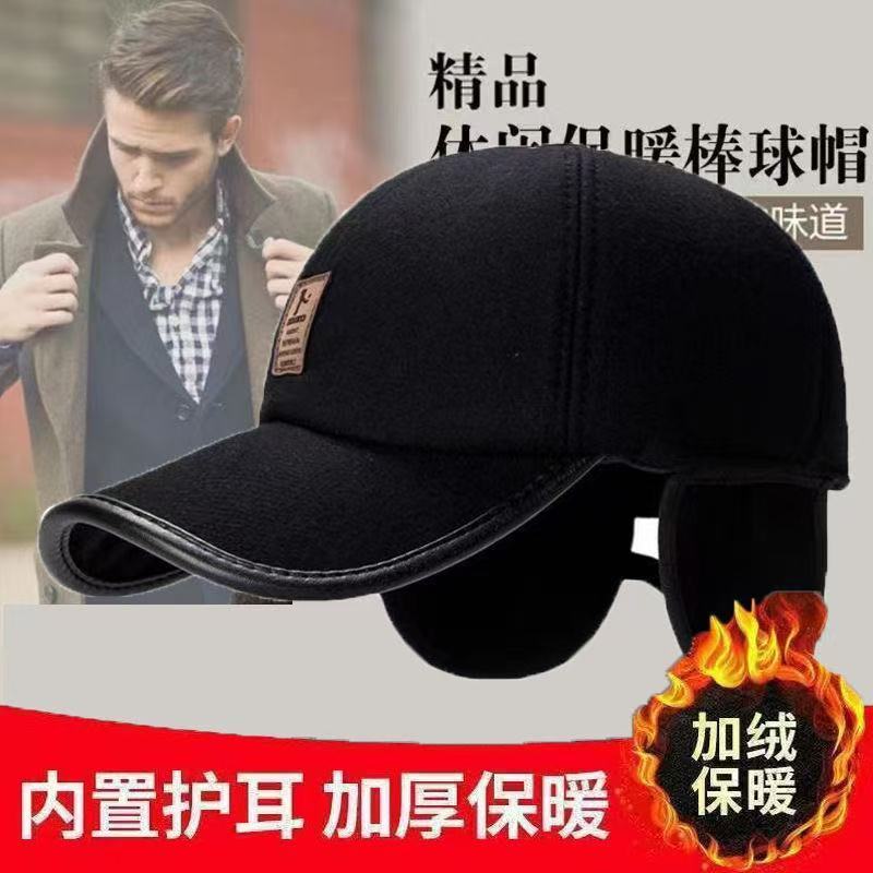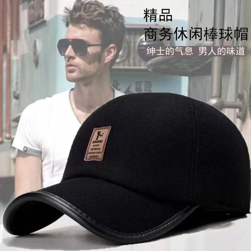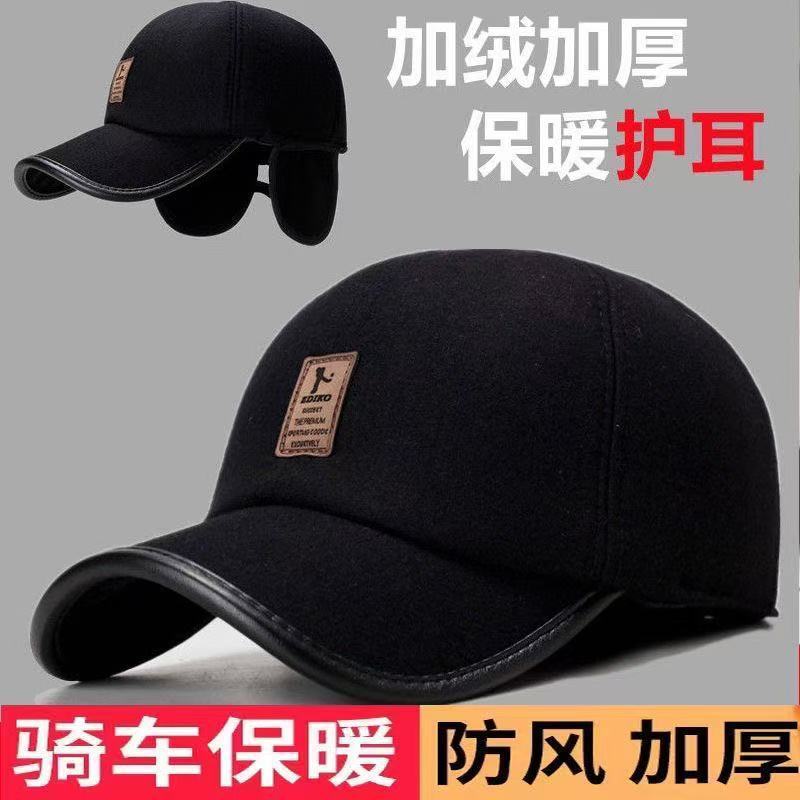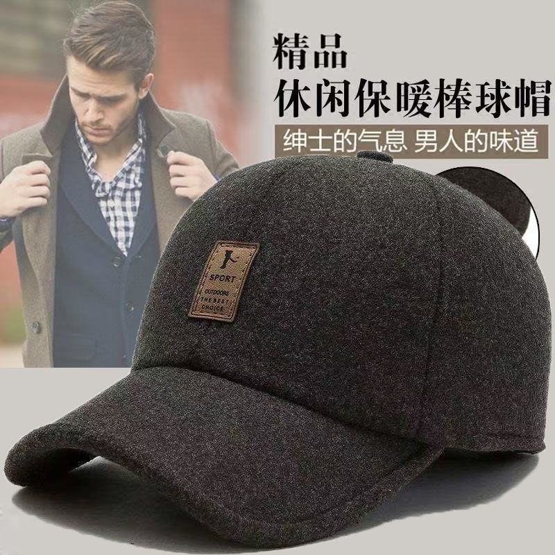 老人骑行买菜冬天毛呢护耳男士帽子中老年人秋冬季老头老人棒球帽