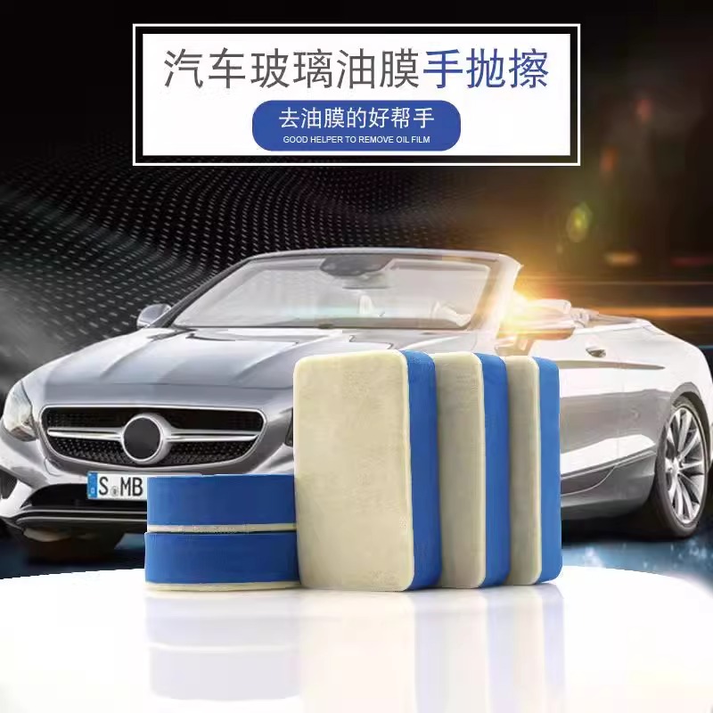 汽车美容玻璃油膜海绵块羊毛毡材质洗油膜祛除研磨手磨块去油清洁