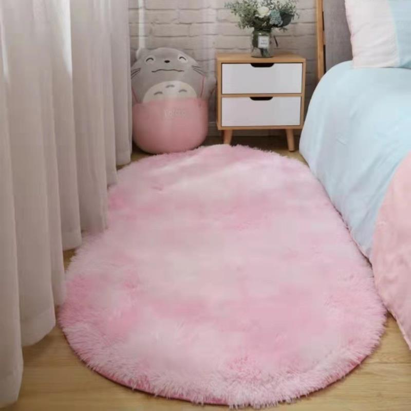 跨境扎染长毛椭圆形床边地毯ins风客厅茶几卧室床边毯ins风家居