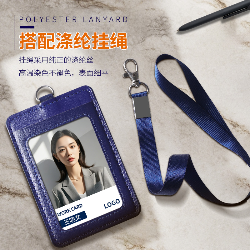 文久皮质证件卡套员工卡套包ic胸卡挂绳工作吊牌带挂绳厂牌胸卡公交工牌工号牌门禁学生饭卡挂脖商务胸牌602