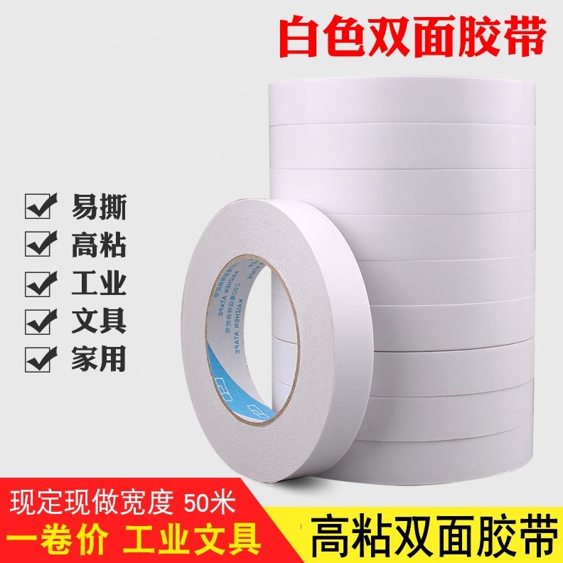 手撕 带纸双面胶带可 固定质办公用品白色强力双面胶双面胶纸