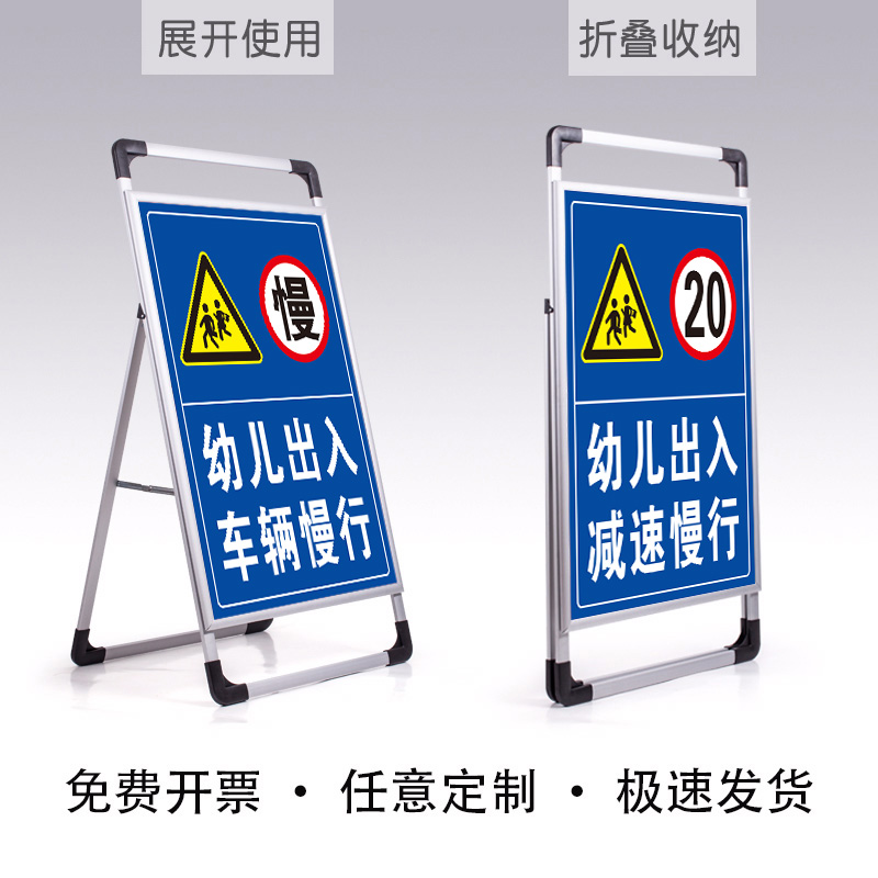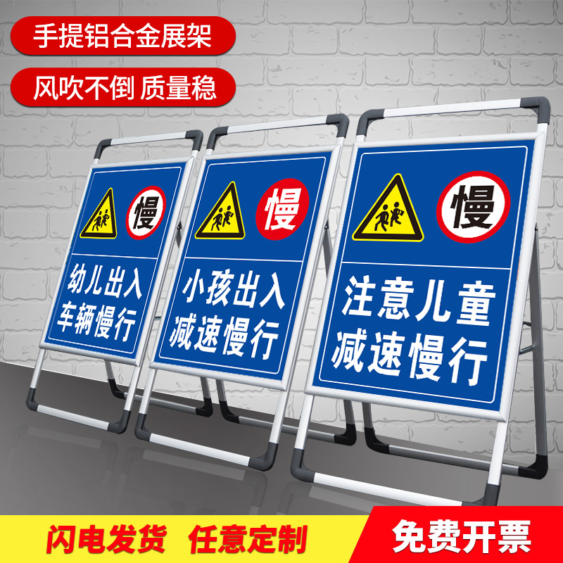 幼儿出入车辆慢行前方学校减速告示牌注意儿童减速慢行标识牌行人