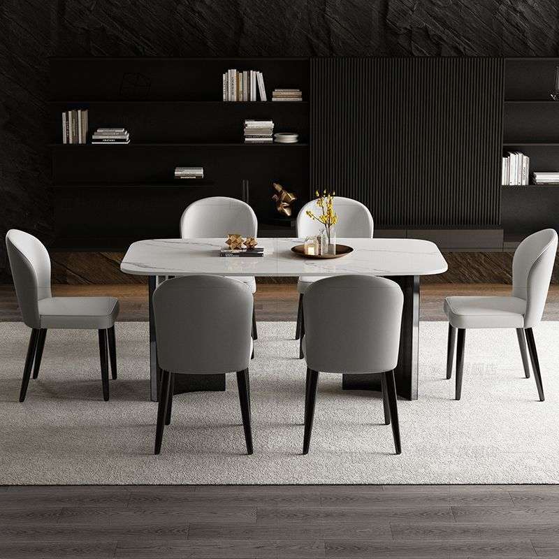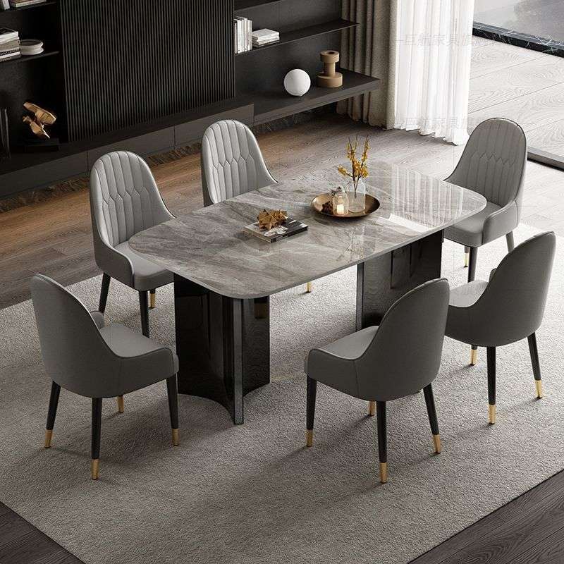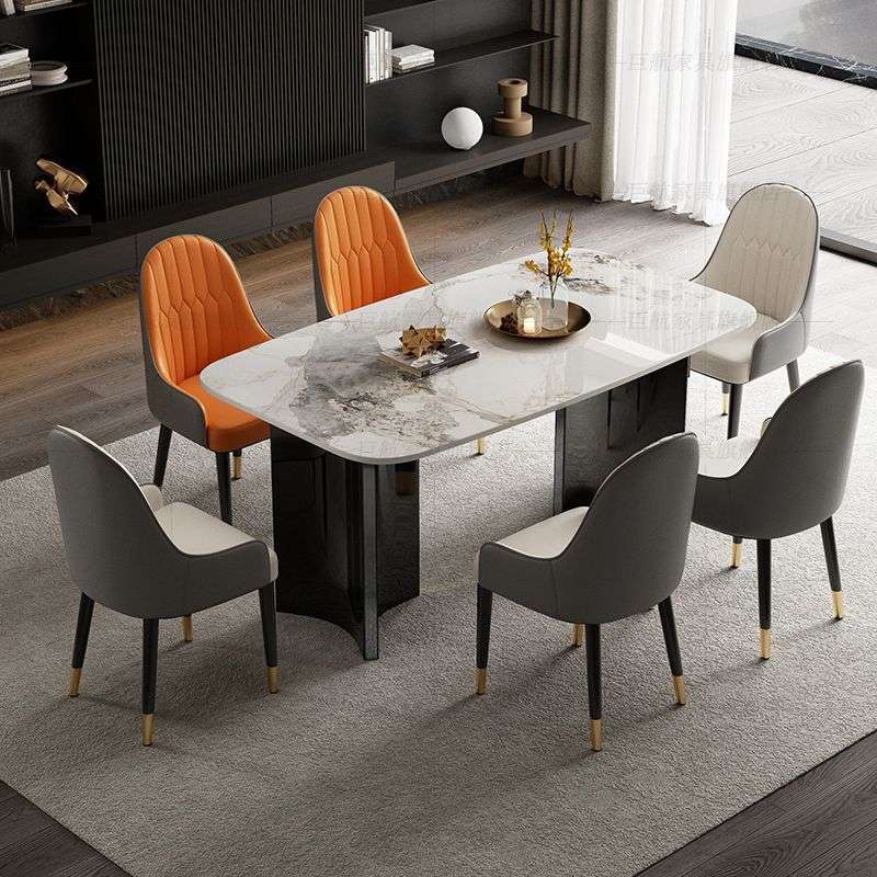 亮光岩板餐桌椅组合意式轻奢长方形现代简约餐桌小户型客厅家用桌