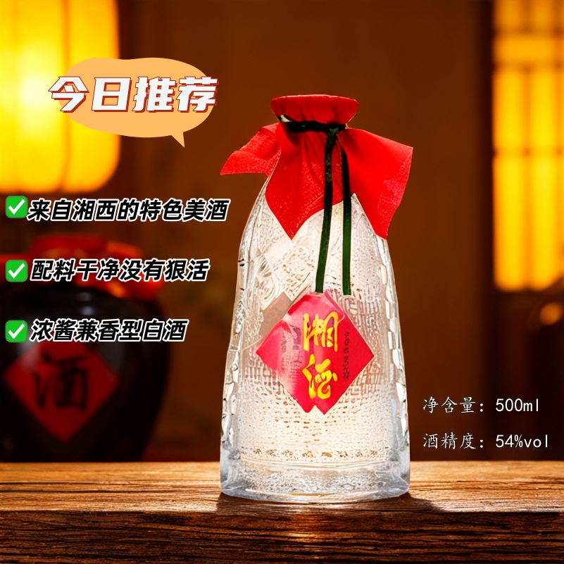 湘酒湘泉酒54度500ml陈年兼香型固态纯粮酒优级发酵白酒无添加