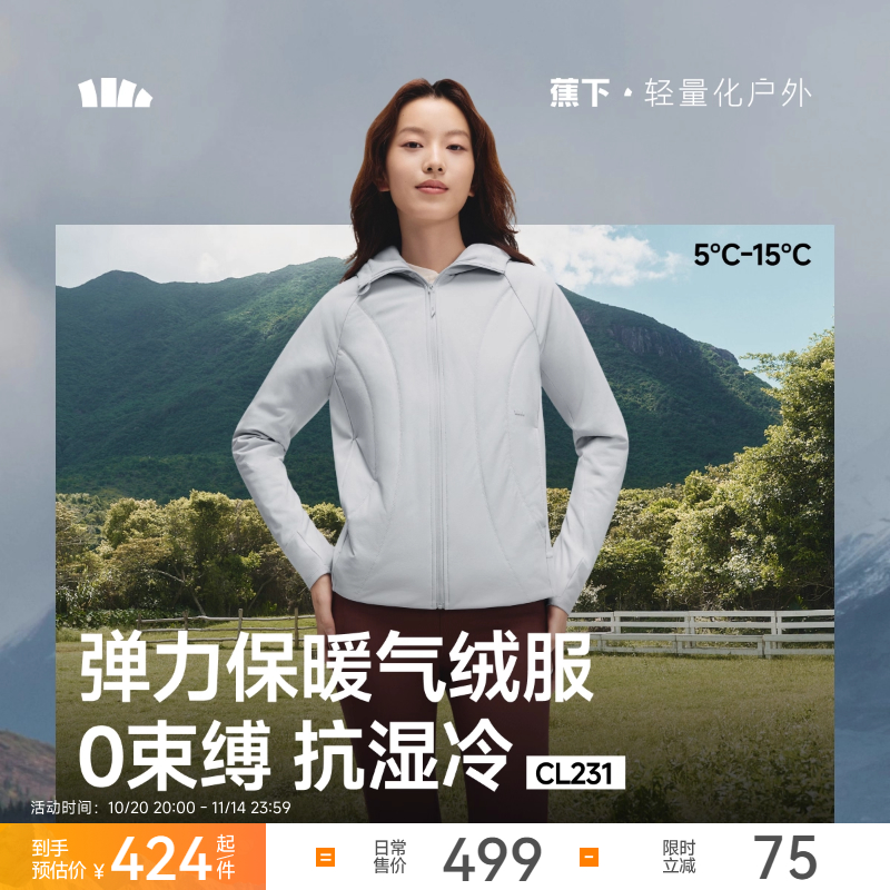 蕉下连帽运动气绒服秋季新款高弹轻薄亲肤保暖抗湿冷跑步夹棉外套