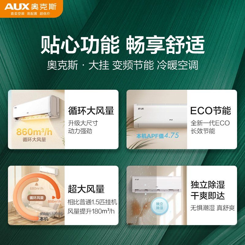 奥克斯空调一级能效2匹家用大挂机卧室客厅变频冷暖省电侠官方店
