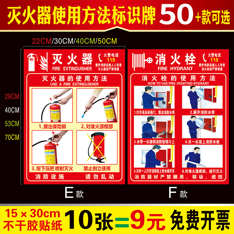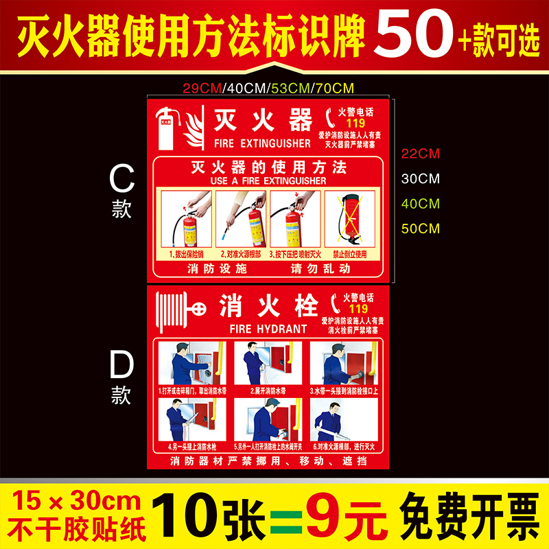 灭火器使用方法标识牌说明贴纸消防警示标识消防栓严禁烟火放置点消防栓使用安全指示禁止警告牌消防标识标牌