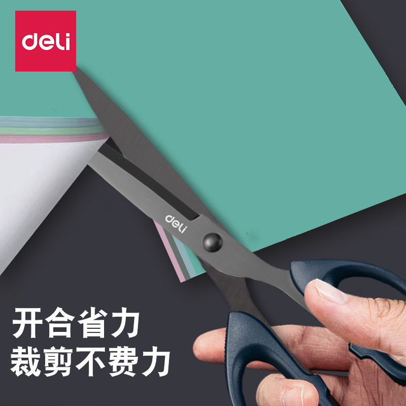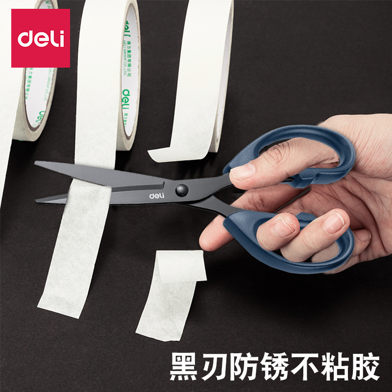 得力剪刀黑刃不锈钢剪子不粘胶小号安全手工剪纸刀精致办公拆快递学生小剪刀便携美工剪锋利裁剪防锈